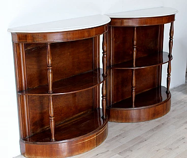 Coppia di consolle in mogano con piano in marmo, inizio '900