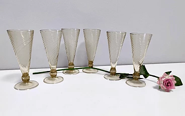 6 Bicchieri in vetro di Murano attribuibili a Vittorio Zecchin, anni '30
