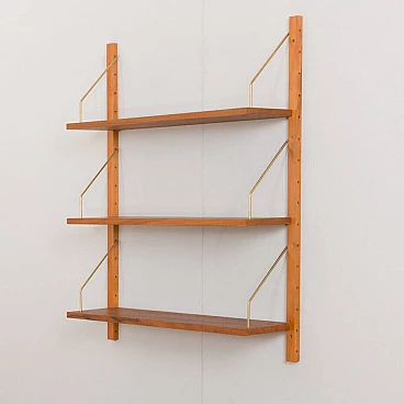 Libreria a parete modulare in teak danese a tre ripiani in stile Cadovius, anni '60
