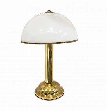 Iconica lampada da tavolo in ottone e plexiglass anni '70. Dimensioni: altezza 70 cm, diametro 45 cm.