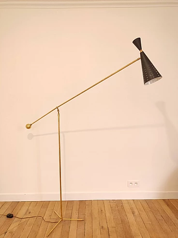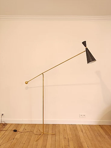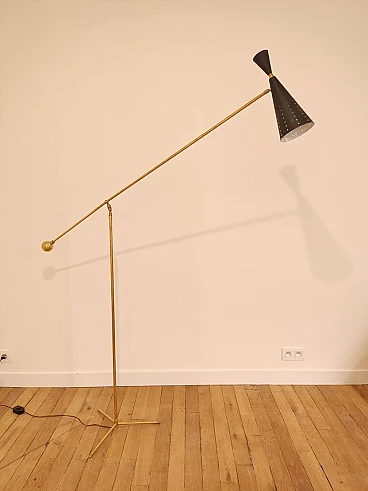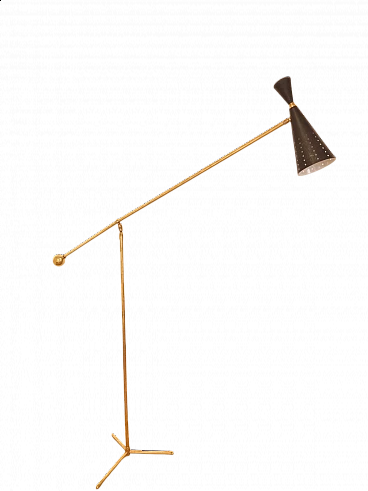 Lampada da terra Diabolo in ottone e metallo, anni '50