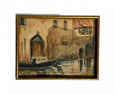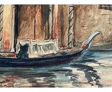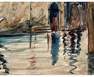 P. De Merville, Vista del canale di Venezia, acquerello su carta, anni '10