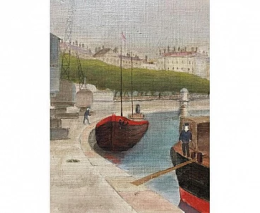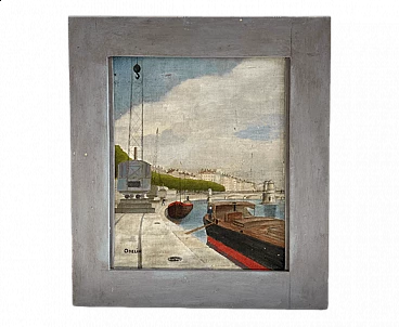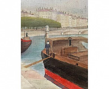 Dipinto di paesaggio urbano di Lione, olio su tela, anni '30