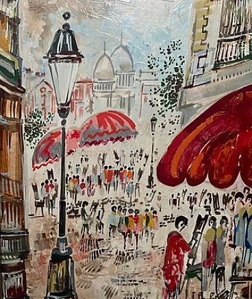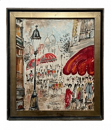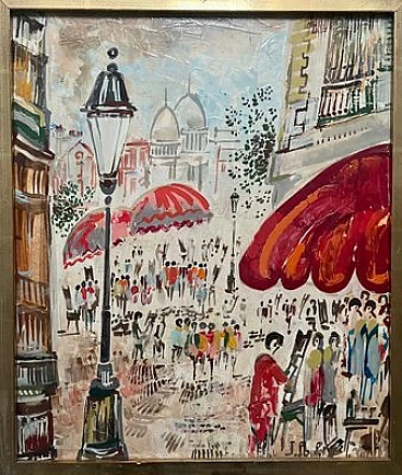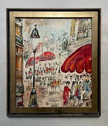 Dipinto impressionista raffigurante Place du Tertre a Montmartre, olio su tavola, anni '60