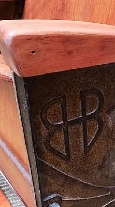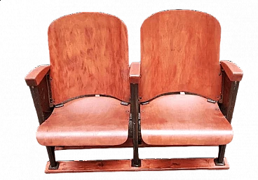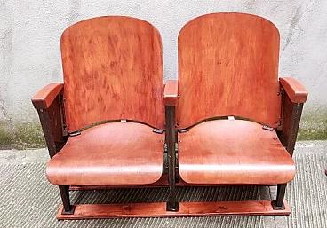 Coppia di poltrone da teatro in legno con supporti in ghisa, anni '40