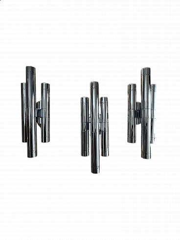 3 Applique in acciaio cromato per Lamperti, anni '70