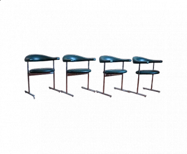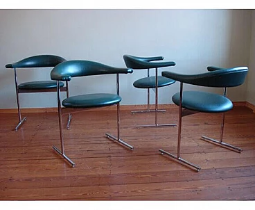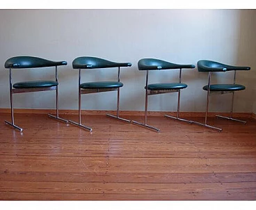 4 Sedie Airport 037 in acciaio cromato per Hans Kaufeld, anni '60