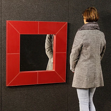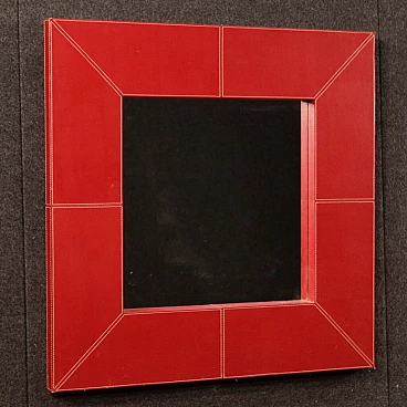 Specchiera con cornice rivestita in similpelle, anni '90