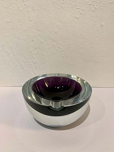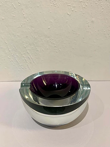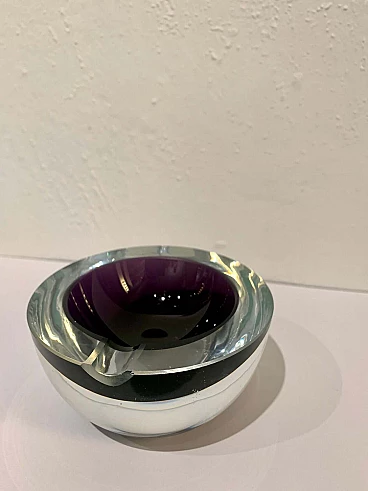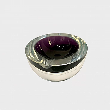 Posacenere rotondo in vetro di Murano sommerso viola, anni '70