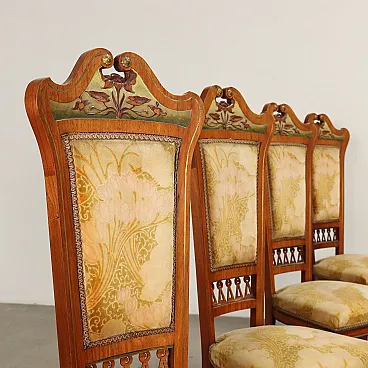 4 Sedie e coppia di poltrone Liberty in mogano, fine '800