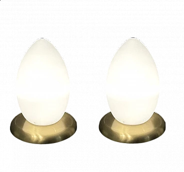 Coppia di lampade da tavolo a forma di uovo in vetro di Murano, anni '80