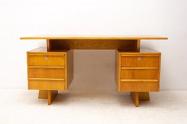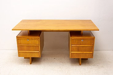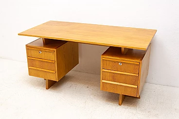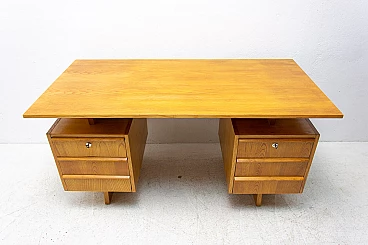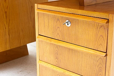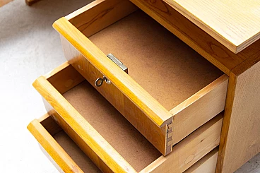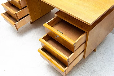 Scrivania in faggio e compensato con sei cassetti, anni '70