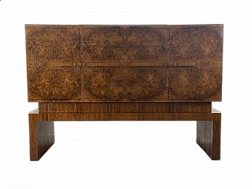Bellissima credenza in radica di noce risalente agli '30 o all'inizio degli anni '40. Radica di noce in buonissime condizioni. Larghezza 150 cm, profondità 51 cm, altezza 107 cm.