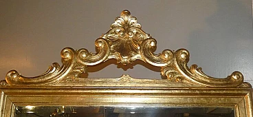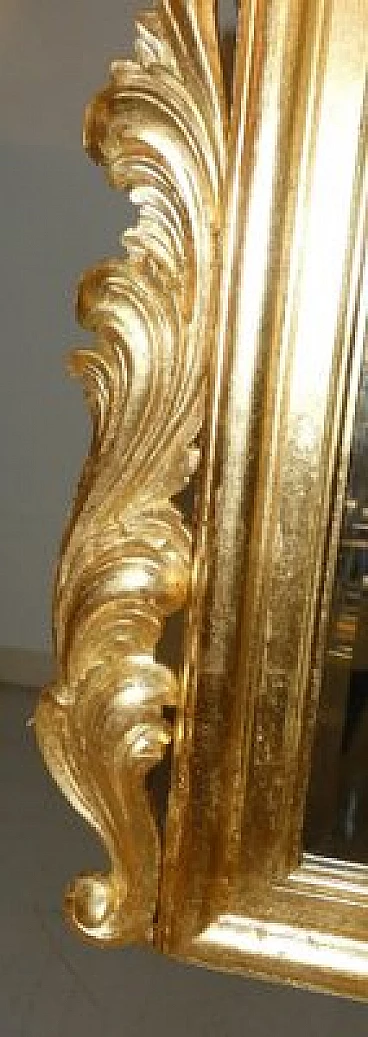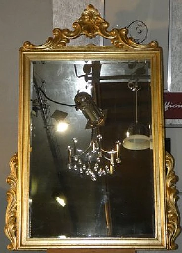 Specchio in legno dorato con riccioli e volute, inizio '900