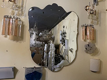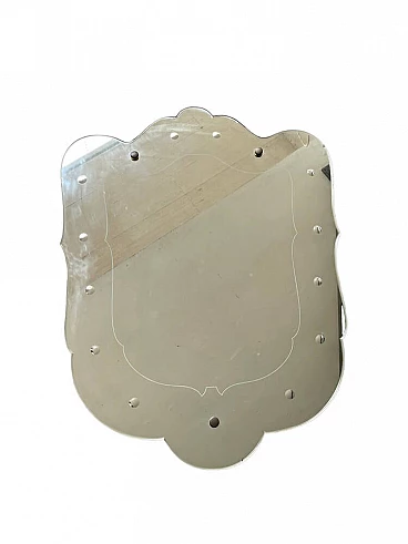 Specchio da parete Art Déco in vetro acidato, anni '50