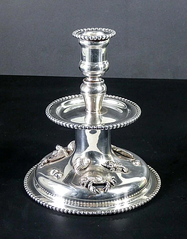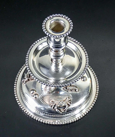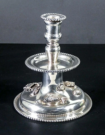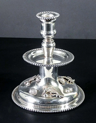 Candeliere in argento decorato con piccole sculture di animali marini per De Vecchi, anni '20