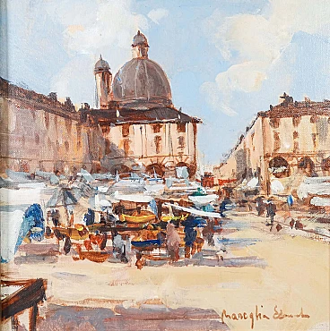 Edmondo Maneglia, P.zza della Repubblica, olio su tela, anni '80