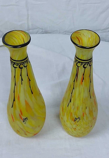 Coppia di vasi Art Nouveau in vetro di François-Théodore Legras, inizio '900