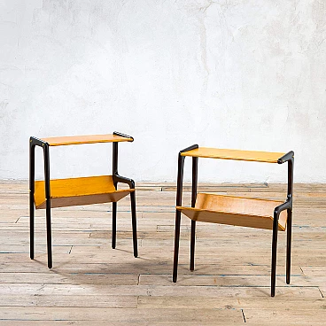 Coppia di tavolini con portariviste in legno di Ico Parisi, anni '50