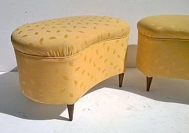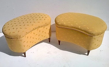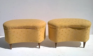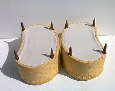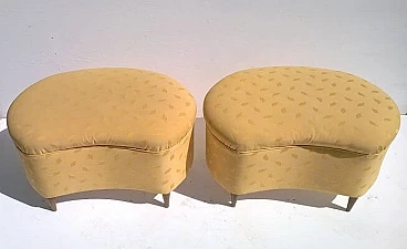 Coppia di grandi poufs in faggio e tessuto giallo, anni '40