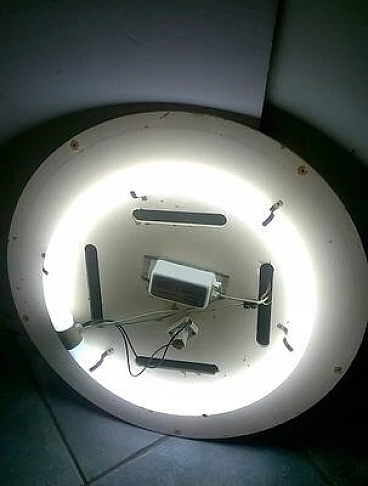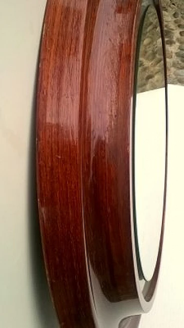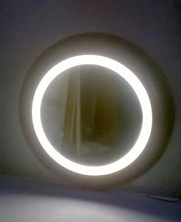 Specchio luminoso rotondo con cornice in teak e neon, anni '60