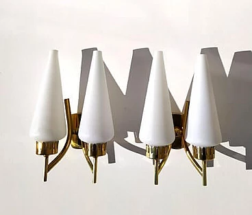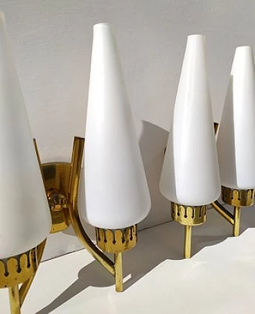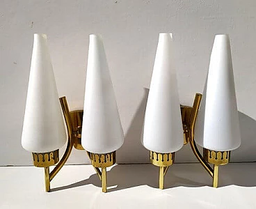 Coppia di applique in ottone e vetro di Angelo Lelli per Arredoluce, anni '50