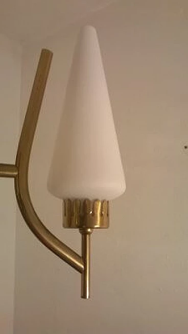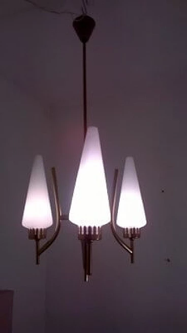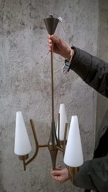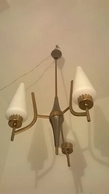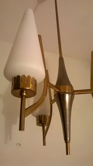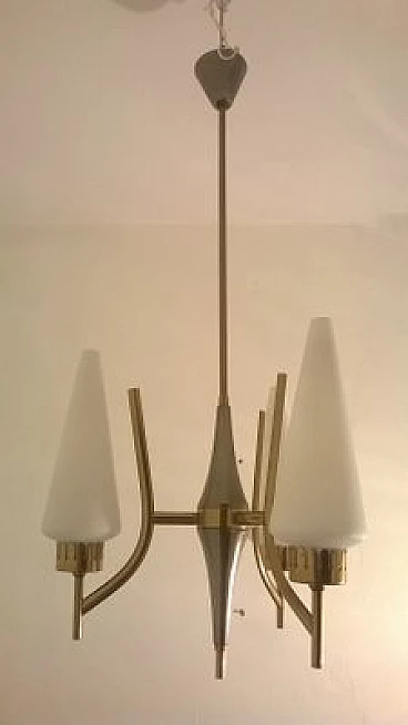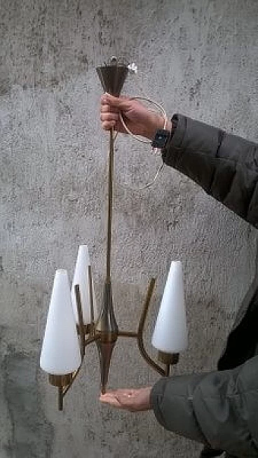 Lampadario in ottone e vetro di Angelo Lelli per Arredoluce, anni '50