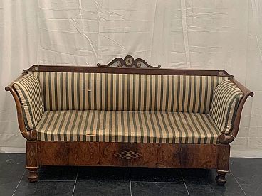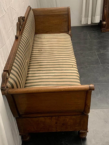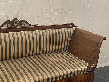 Divano in noce Impero Carlo X intarsiato in ottone, Genova 1810