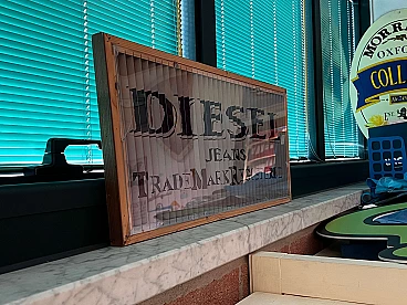 Insegna pubblicitaria in legno di Diesel, anni '90