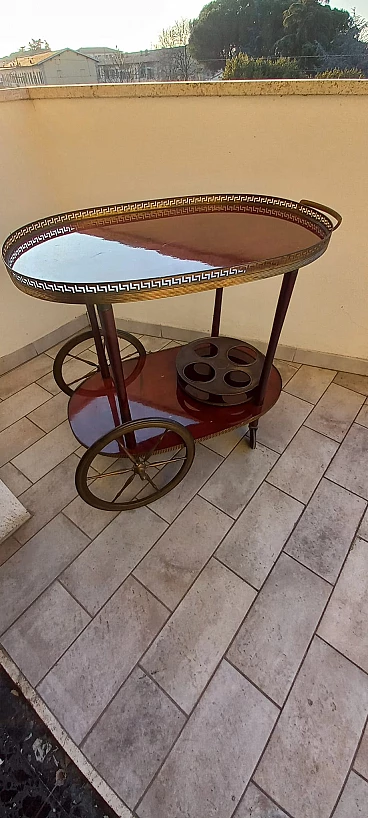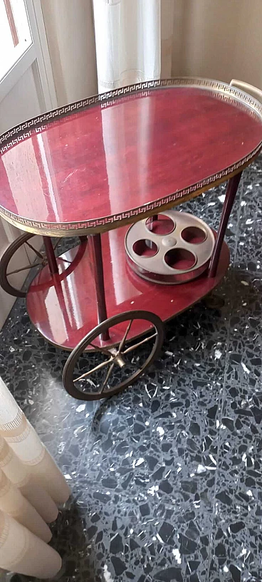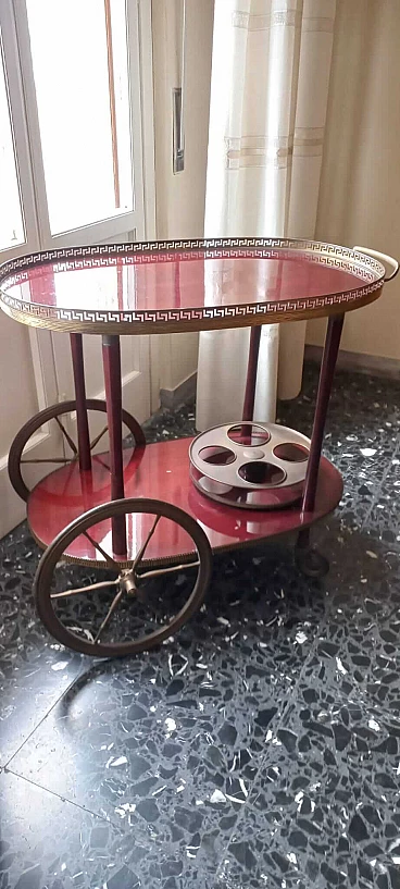 Carrello bar in legno e metallo con portabottiglie, anni '60