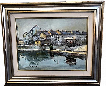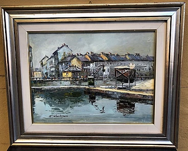 Eugenio Mantegani, Milano - La Darsena, dipinto a olio, anni '50