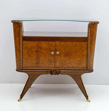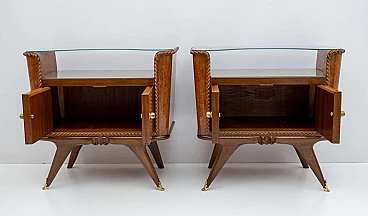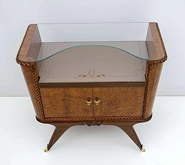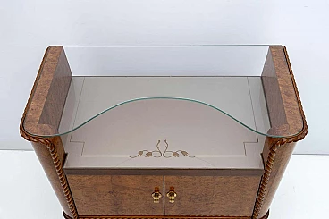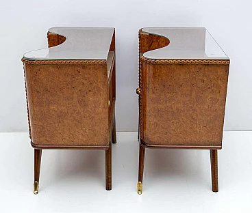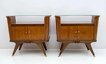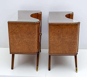 Coppia di comodini in radica Art Déco con ripiani in vetro, anni '30