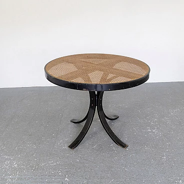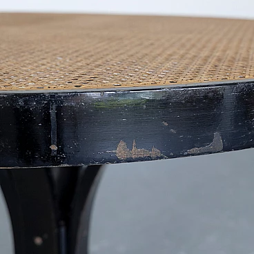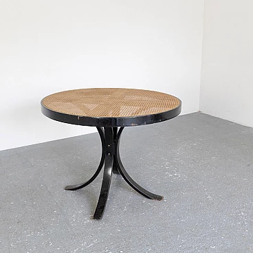 Tavolo rotondo in faggio con piano in paglia di Vienna, anni '60