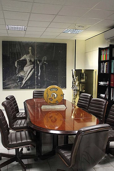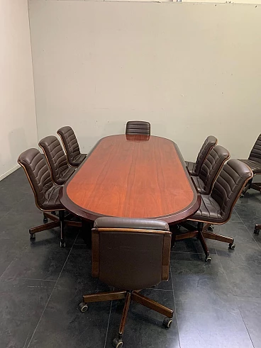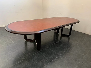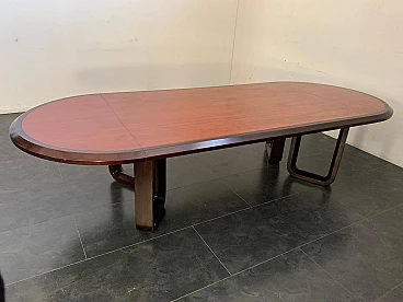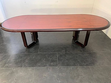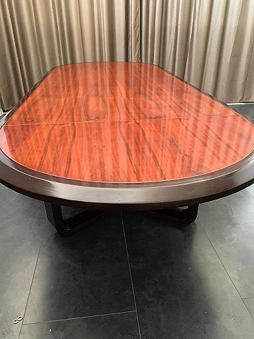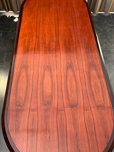 Tavolo ellittico in palissandro massiccio e piuma di mogano, anni '60