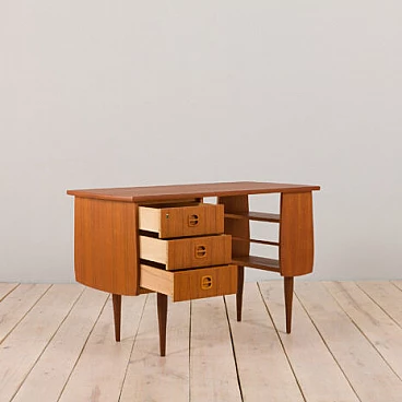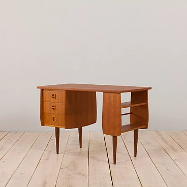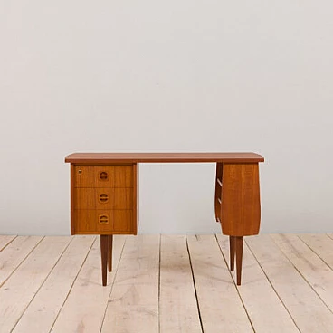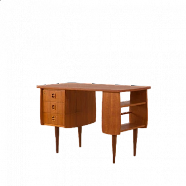 Scrivania norvegese in teak con cassetti e mensole, anni '60