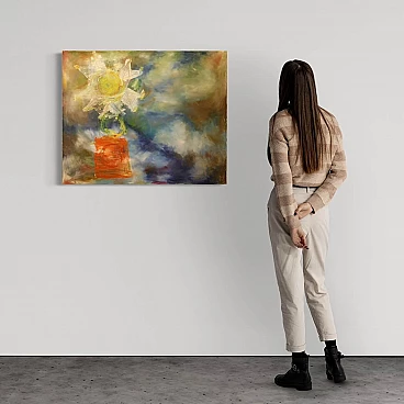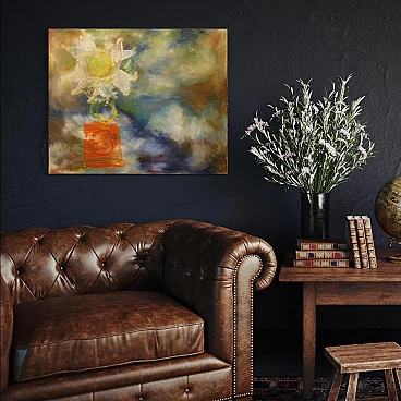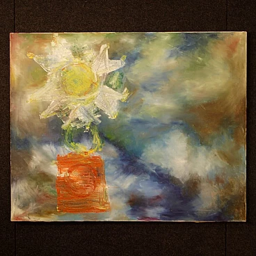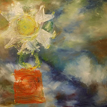 Dipinto olandese astratto, tecnica mista su tela, anni '90