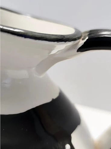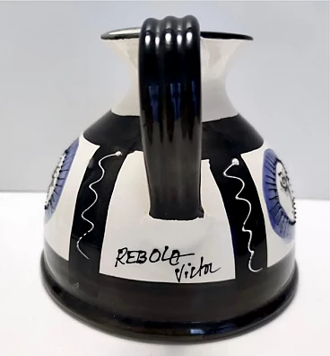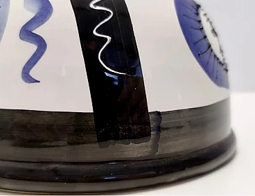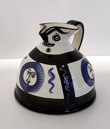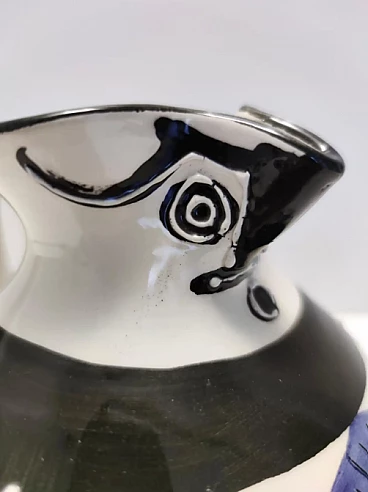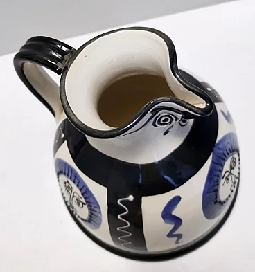 Brocca in ceramica bianca, nera e blu dipinta a mano nello stile di Picasso, anni '70
