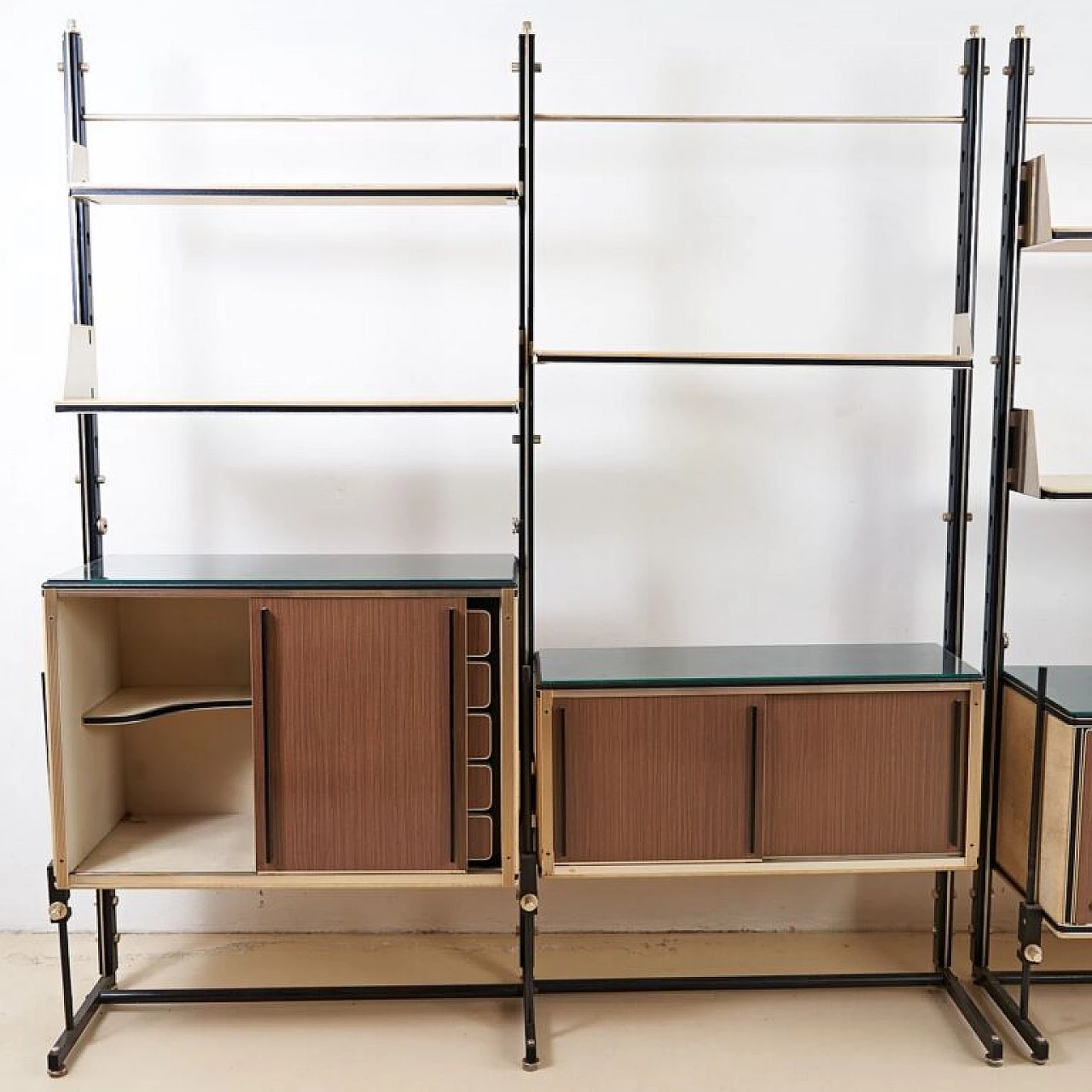 Libreria in ferro e legno di Umberto Mascagni, anni '40