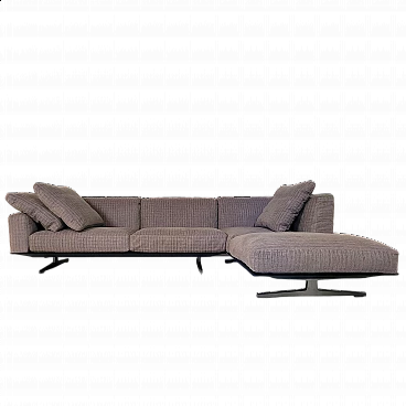 Divano Flexform con area lounge, in condizioni pari al nuovo. É composto da un elemento a due posti di larghezza 190 cm e profondità 94 cm, un elemento angolare con zona lounge di larghezza 94 cm e profondità 190 cm e tre cuscini. Dimensioni: larghezza totale 284 cm, altezza seduta 38 cm, altezza 69 cm. Design di Antonio Citterio. Struttura in acciaio, rivestita in pelle, con braccioli e schienale in poliuretano espanso, dacron e piuma con inserto in metallo. Cuscino di seduta in piuma d'oca e anima interna resiliente. Cuscini imbottiti in piuma.