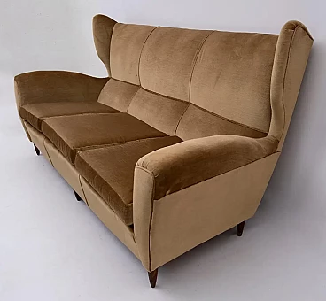 Divano in faggio e velluto con schienale alto di Gio Ponti, anni '50