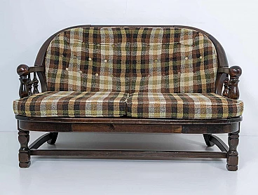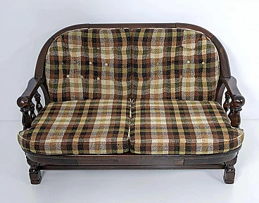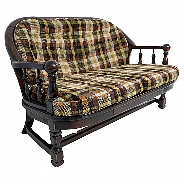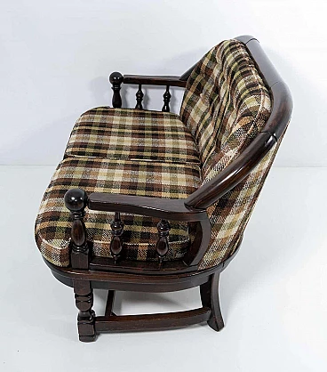 Divano country in noce e tessuto scozzese di Mobili Pizzetti, anni '70