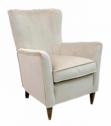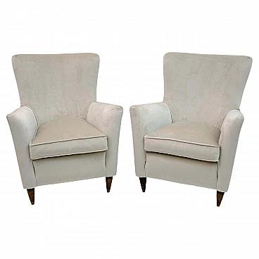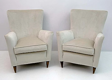 Coppia di poltrone in velluto avorio attribuite a Gio Ponti per ISA Bergamo, anni '50