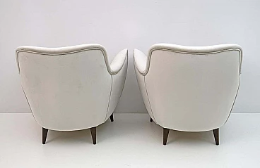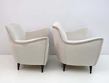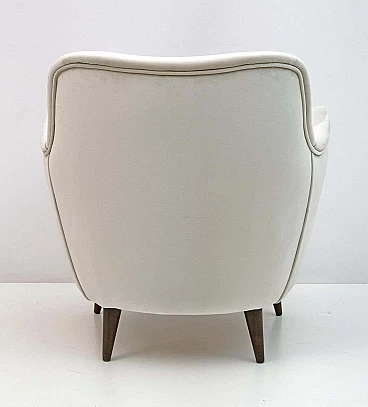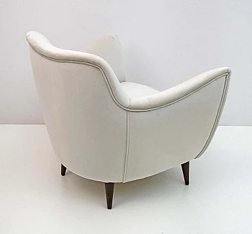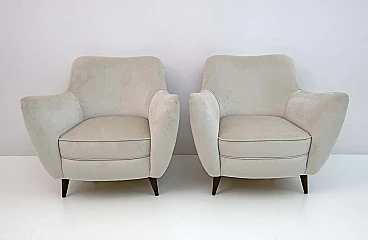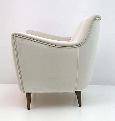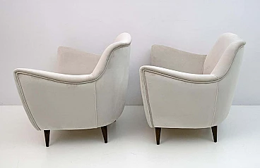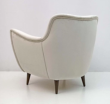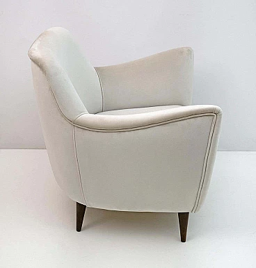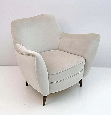 Rara coppia di poltrone Perla disegnate da Giulia Veronesi e prodotte da ISA Bergamo, Italia, nei primi anni '50. Le sue curve sensuali e le gambe elegantemente affusolate conferiscono alla poltrona un aspetto scultoreo e moderno. Queste splendide poltrone sono state completamente rinnovate e recentemente rivestite in un sontuoso velluto color avorio. Il modello Perla è una delle sedie simbolo dell'era moderna italiana. Bibliografia: Domus n. 274, ottobre 1952, pagina 4. Il designer del modello Perla è stato accreditato come G. Veronesi nella pubblicità ISA su Domus. In precedenza si era ipotizzato che il nome completo fosse Guglielmo Veronesi. Ulteriori ricerche recenti indicano che è stata Giulia Veronesi a disegnare la poltrona e il divano Perla.