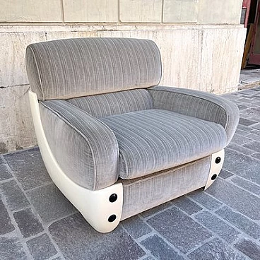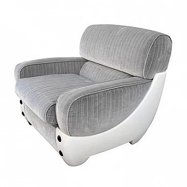 Poltrona in fibra di vetro e velluto grigio, anni '70