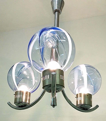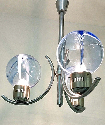Lampadario Membrana in vetro di Murano azzurro di Toni Zuccheri, anni '70