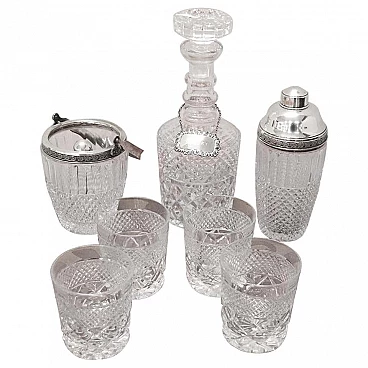 Bellissimo e raffinato servizio da whisky in cristallo e argento 800 completo per 4 persone al tavolo il set comprende 4 bicchieri 1 shaker 1 bottiglia 1 secchiello per il ghiaccio. Condizioni perfette prezzo trattabile inviate pure la vostra proposta di acquisto.