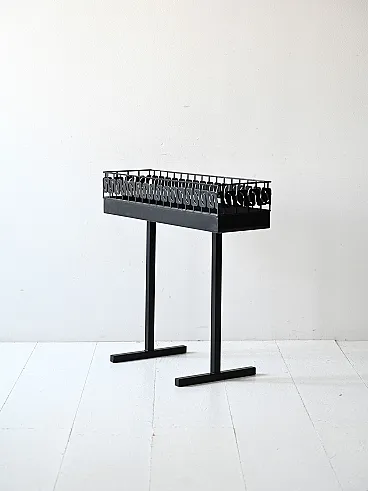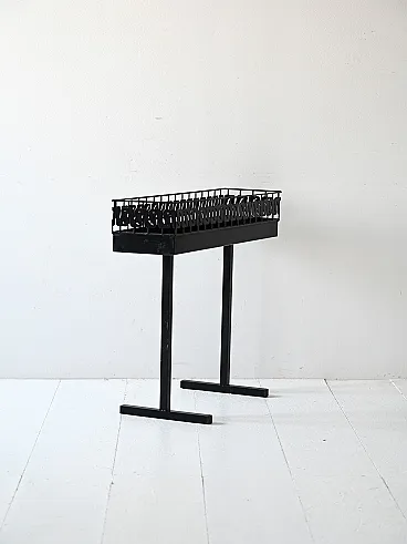 Fioriera scandinava in metallo dipinto di nero, anni '60