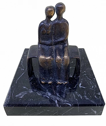 Scultura in bronzo raffigurante due innamorati su base in marmo per Spirale Arte, anni '80