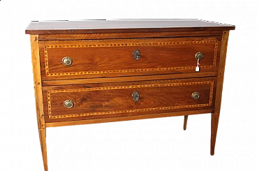 Cassettone Luigi XVI in noce massello intarsiato, inizio '800