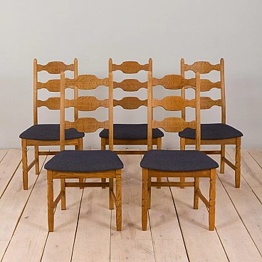 5 Sedie da pranzo in quercia danese di H. Kjærnulf, anni '60